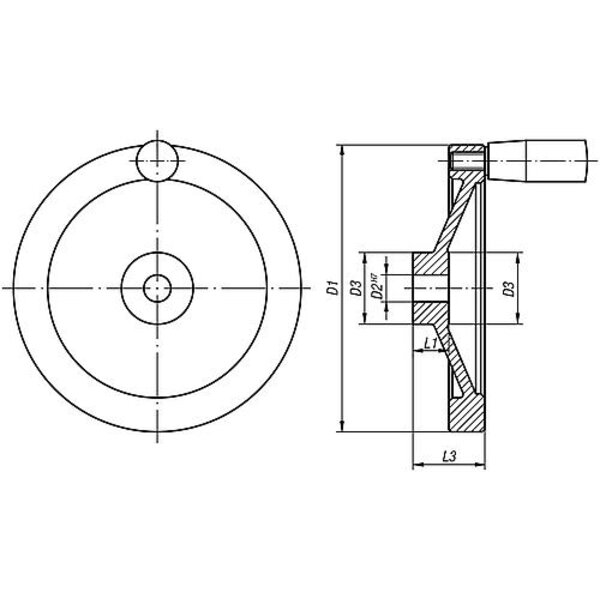 SCHEIBENHANDRAD D1=160 PASSBOHRUNG D2=0,5 ALUMINIUM, KOMP:DUROPLAST, GRIFF DR...