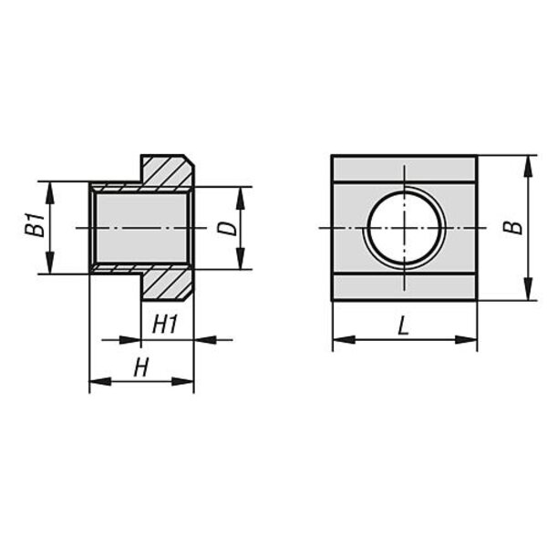 MUTTER FÜR T-NUT DIN508, M16, NB=18, L=28, EDELSTAHL A4 1.4571 BLANK