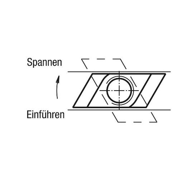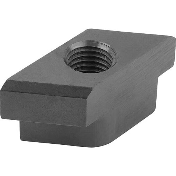 Der Vorteil der Rhombusmuttern für T-Nuten liegt darin, dass sie von oben eingesetzt werden können. Sie sind besonders zweckmäßig bei langen T-Nuten oder wenn die Belegung des Maschinentisches das seitliche Einführen von Spannschrauben oder Muttern für T-Nuten nicht erlaubt.