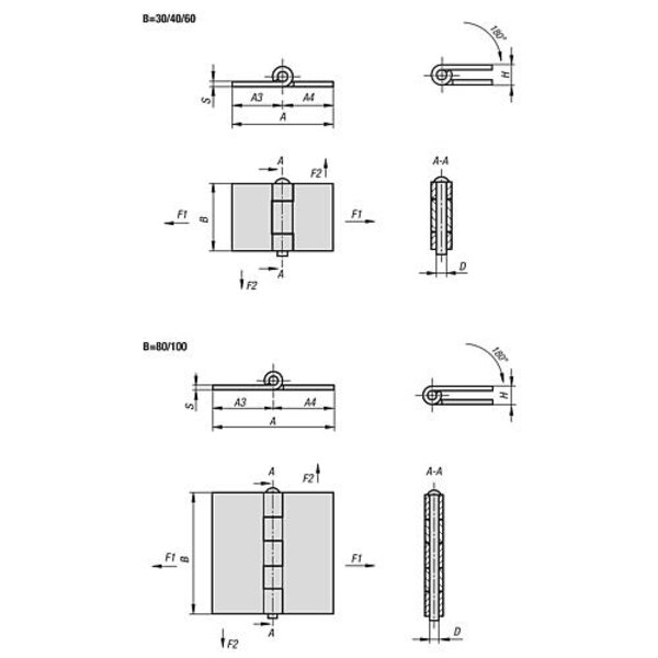 SCHARNIER SCHWEIßBAR, STAHL, A=60, B=30, S=3