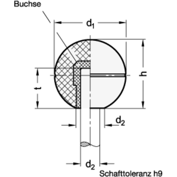Bei Verwendung von Kugelknöpfen GN 319.1 erübrigt sich das Gewinde am Schaft.