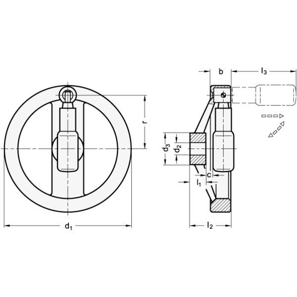 GANTER Umleggriff-Handrad mit Griff GN 798.3
