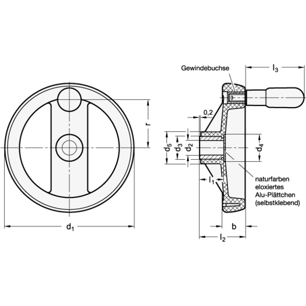 Speichenhandräder, Kunststoff, Buchse Stahl