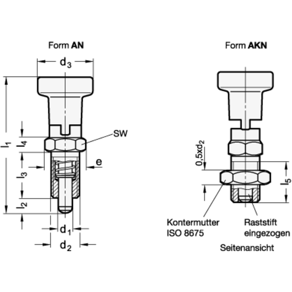 - Form: AKN - mit Kontermutter, mit Edelstahl-Knopf