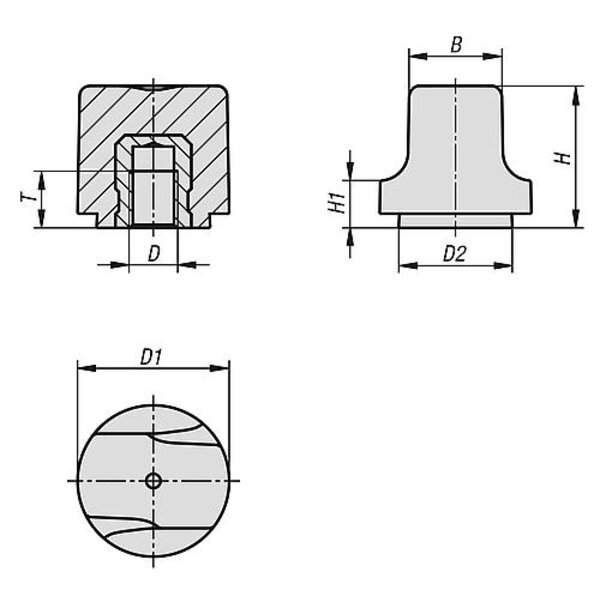 GRIFFMUTTER GR.2 D=M05 D1=20 H=18,5, FORM:K THERMOPLAST, SCHWARZGRAU RAL7021,...