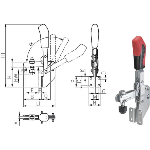 Senkrechtspanner AMF, Senkrechtspanner winkel mit offenem Haltearm