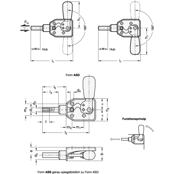 Schubstangenspanner GN 840 zeichnen sich durch ihre extrem niedrige Bauhöhe in jeder Spannhebel-Stellung aus.