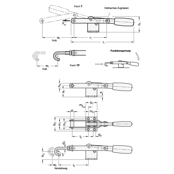Der Zughaken der Verschlussspanner GN 850 kann innerhalb des Hubweges justiert werden.