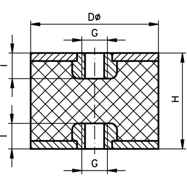 Metall-Gummipuffer MGI, Drm:75mm,Höhe:50mm,Gewinde:M12x12