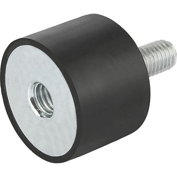 GUMMIPUFFER TYP B INNEN- UND AUSSENGEWINDE M10X28, D=50, H=30, STAHL, KOMP:ELAST. NATURKAUTSCHUK SHORE