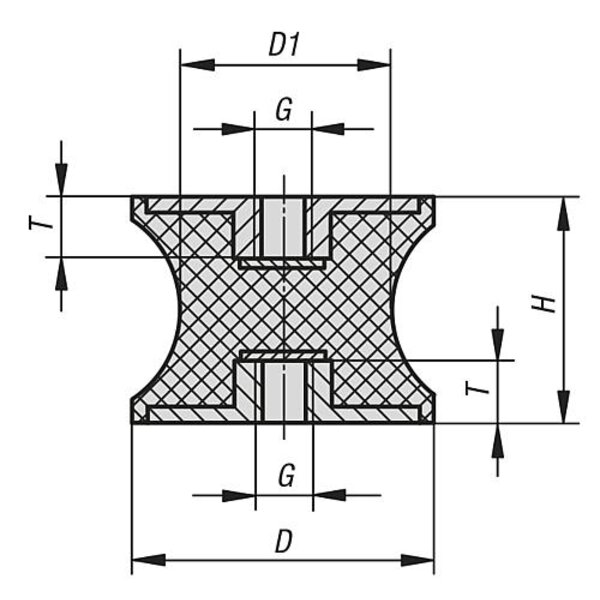 KIPP Gummi-Metall-Puffer Typ CT D=75, H=40