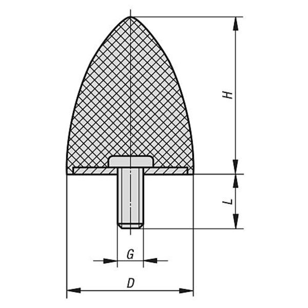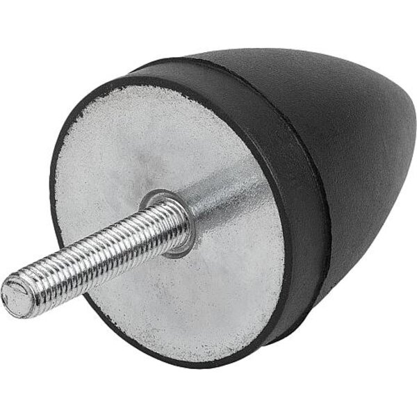 GUMMIPUFFER PARABELFÖRMIG AUSSENGEWINDE M06X18, D=20, H=24, STAHL, KOMP:ELAST. NATURKAUTSCHUK SHORE 55A, SCHWARZ