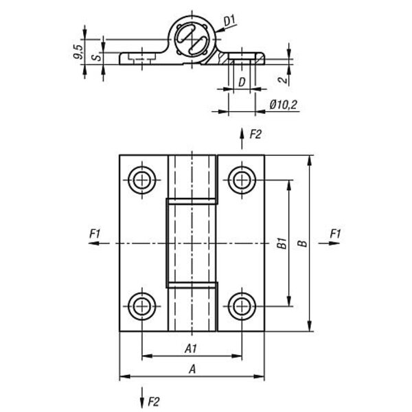 SCHARNIER OHNE FEDER, OHNE STOPFEN A=55, B=65, ALUMINIUM FARBLOS ELOXIERT