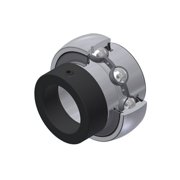 Sphärischer Außenring mit Verdrehsicherung, Befestigung durch Exzenterspannring, Dichtung mit Schleuderscheibe
