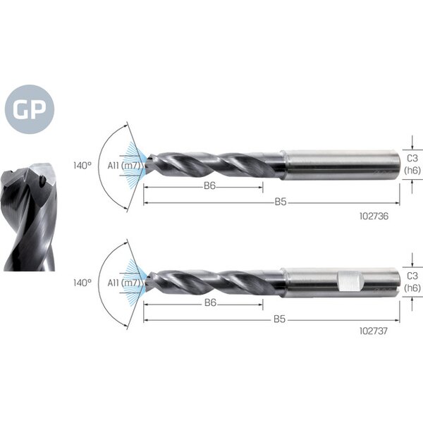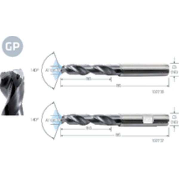 Hochleistungsbohrer PREMUS GP, VHM TiAlN Schaftform HA 3 × A11 mit Innenkühlung