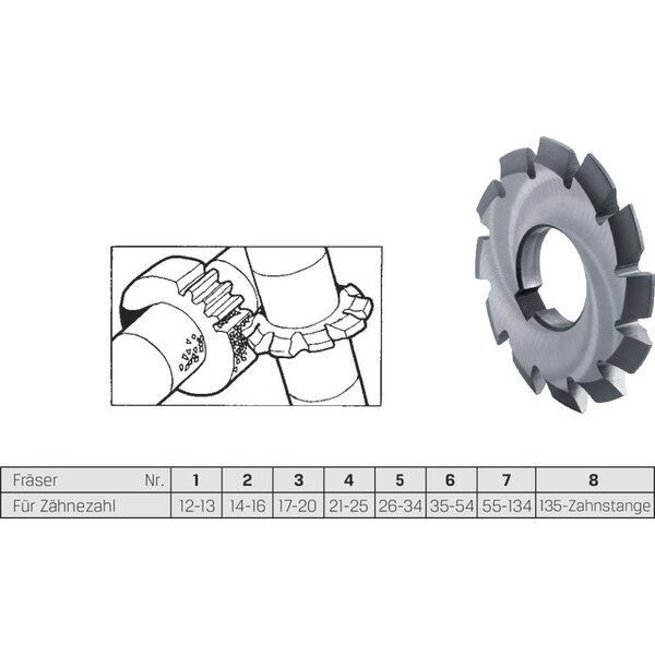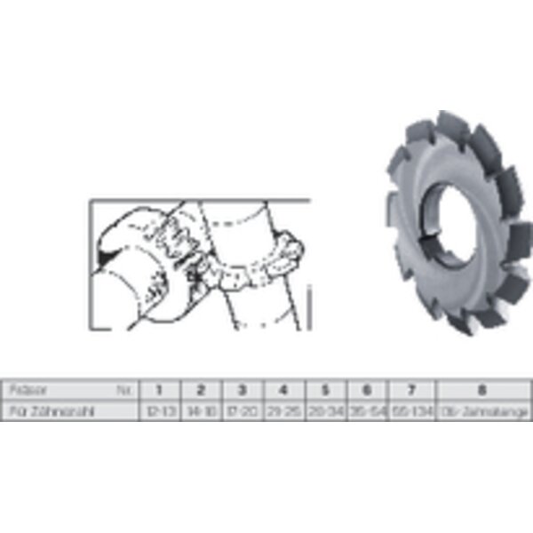 Bestell-Beispiel: 156961 2,0/3 (Fräser mit Modul 3,0 und für Zähnezahl 17-20)