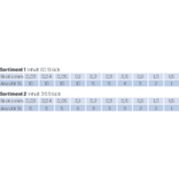 Sortiment 2: Inhalt 35 Stück (Breite mm / Anzahl Stk.),
