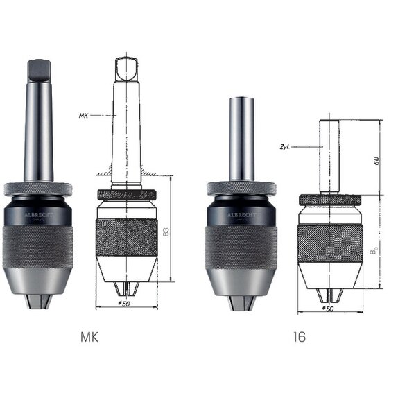 Schnellspannbohrfutter ALBRECHT, Spannbereich 3–16 mm