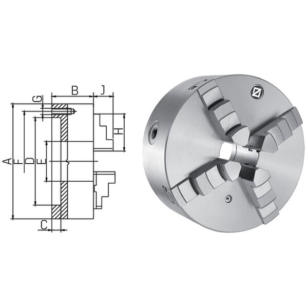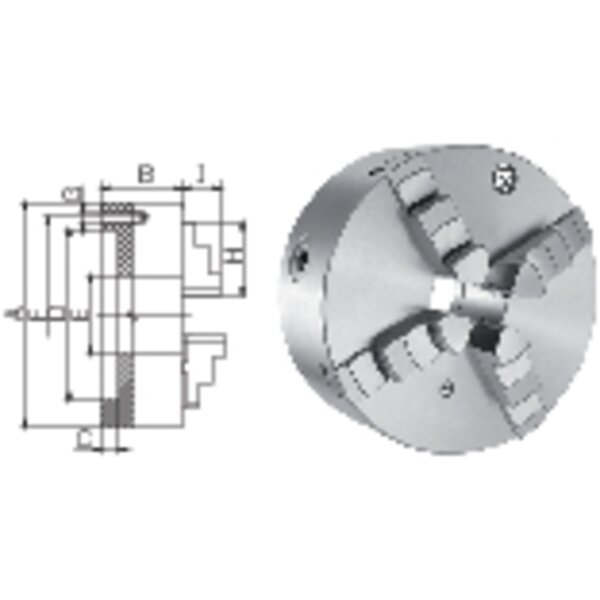 - Ausführungmit zylindrischer Zentrieraufnahme nach DIN 6350, System Cushman, Futterkörper aus Spezialguss bzw. mit geschmiedetem Stahlkörper, Rundlauf- und Plangenauigkeit nach DIN 6386, mit gehärteten Dreh- und Bohrbacken sowie Spannschlüssel