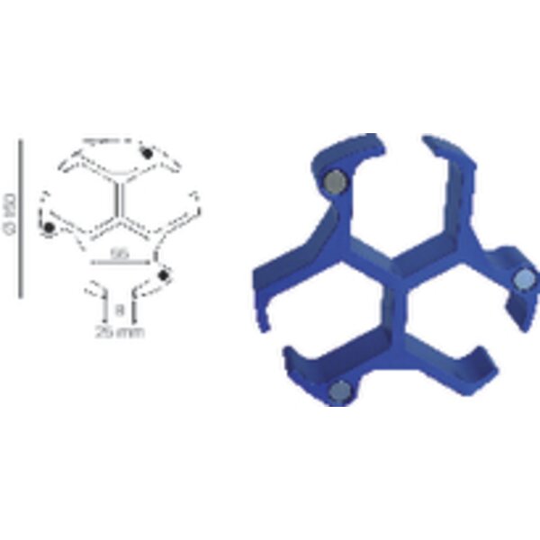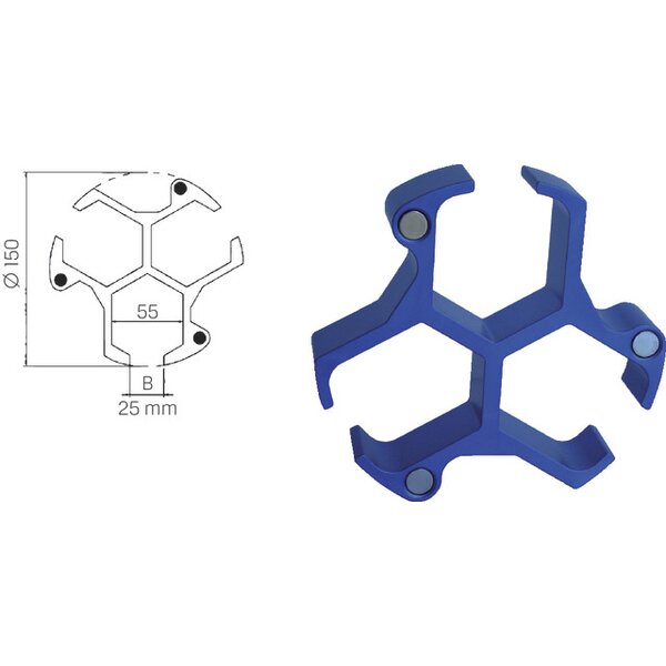 - in 5 Höhen verfügbar (15, 20, 25, 30, und 35 mm) und wird mittels 3 Magneten im Drehkörper befestigt