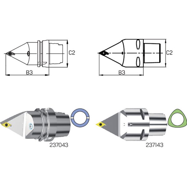 - Ausführung- für Drehbearbeitung- Kühlung durch ausgerichtete Kühldüse und Hochdruckkühldüse- Mitnehmernuten am HSK nach ICTM-Standard