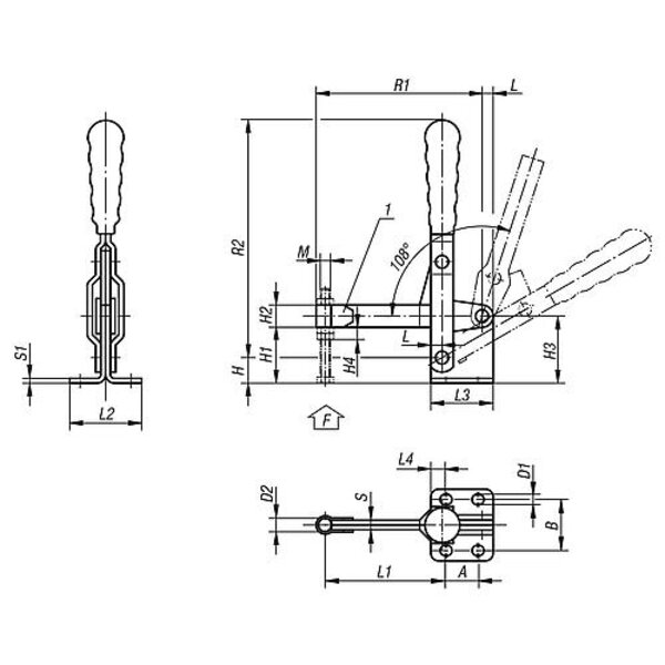 SCHNELLSPANNER VERTIKAL, FUß WAAGRECHT, MIT VOLLEM SPANNARM, STAHL VERZINKT, ...