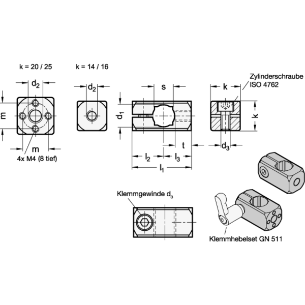 GANTER Anbauklemmhalter, schwarz eloxiert