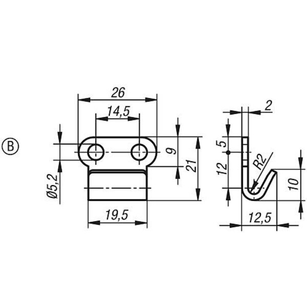 GEGENHAKEN FÜR SPANNVERSCHLUSS, MIT BÜGEL, FORM:B, EDELSTAHL 1.4301 BLANK
