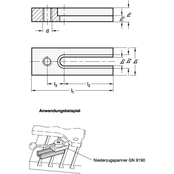 Auflageleisten GN 9190.3 sind als Zubehör für Niederzugspanner GN 9190 / GN 9190.1 / GN 9190.2 vorgesehen.