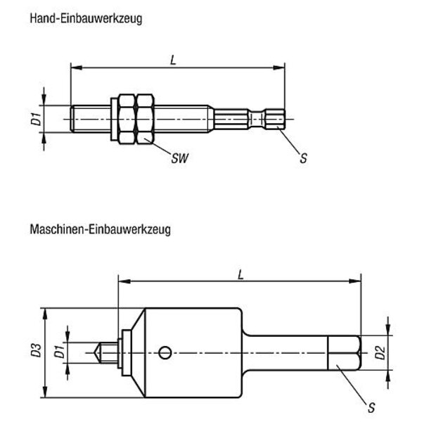 EINBAUWERKZEUG HANDAUSFÜHRUNG, M04, L=48, STAHL VERZINKT
