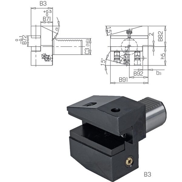 Werkzeugh. PRETEC, DIN 69880 Vierkant-Queraufnahme rad. Überkopf R kurz Form B3