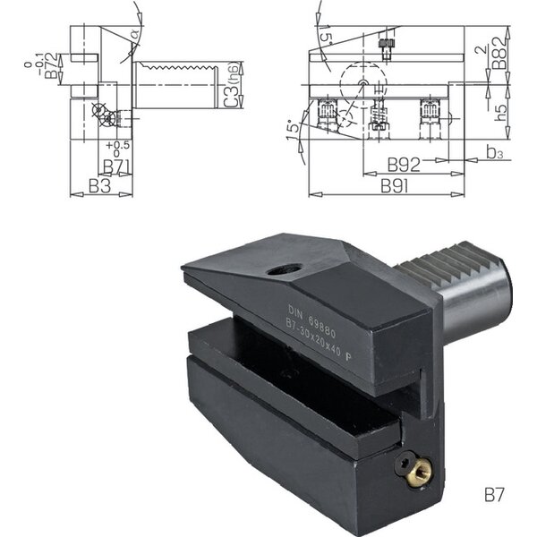 Werkzeugh. PRETEC, DIN 69880 Vierkant-Queraufnahme, Rad. Überkopf R lang Form B7