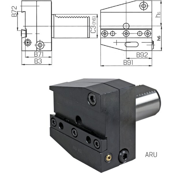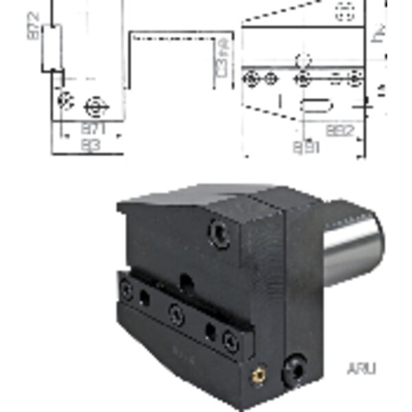 Werkzeughalter PRETEC, höhenverstellbar, überkopf, rechts, Form ARU