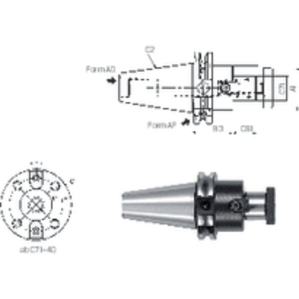 - Ausführungaus Einsatzstahl, alle Funktionsflächen geschliffen, Zugfestigkeit im Kern von mindestens 800 N/mm2, gehärtet (min. HRC 56), mit Mitnehmersteinen und vergrößerter Auflagefläche, Kegelgenauigkeit min. AT 3, zentrale Kühlmittelzufuhr und wiederverschließbare Kühlmittelkanäle am Bund, Kühlmittel-Austrittsbohrungen an der Stirnseite