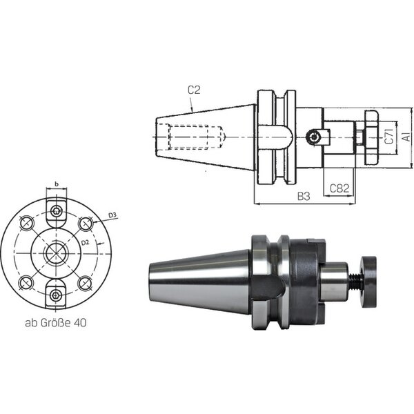 - [C2] Aufnahmegröße, maschinenseitig: BT40