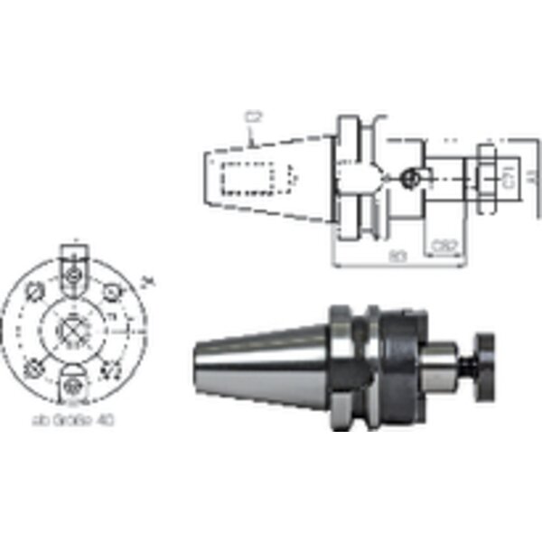 - ab Ø 40 Aufnahme nach DIN 2079 möglich (4 zusätzliche Gewindebohrungen)
