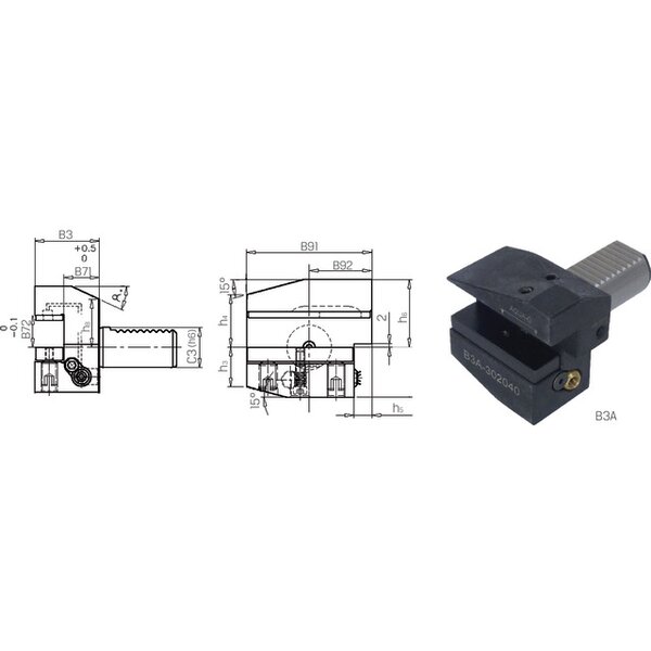 Werkzeughalter PREMUS, rechts, kurz, mit Innenkühlung, Typ B3