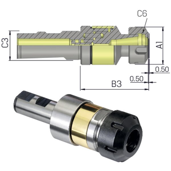 - [C6] Aufnahmegröße, werkstückseitig: ER16-M