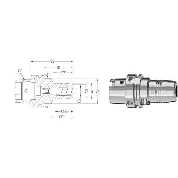 - Ausführung- mit Einstellschraube zur axialen Längenverstellung - für automatischen Werkzeughalterwechsel - Spannung ohne Peripheriegeräte - Rundlaufgenauigkeit