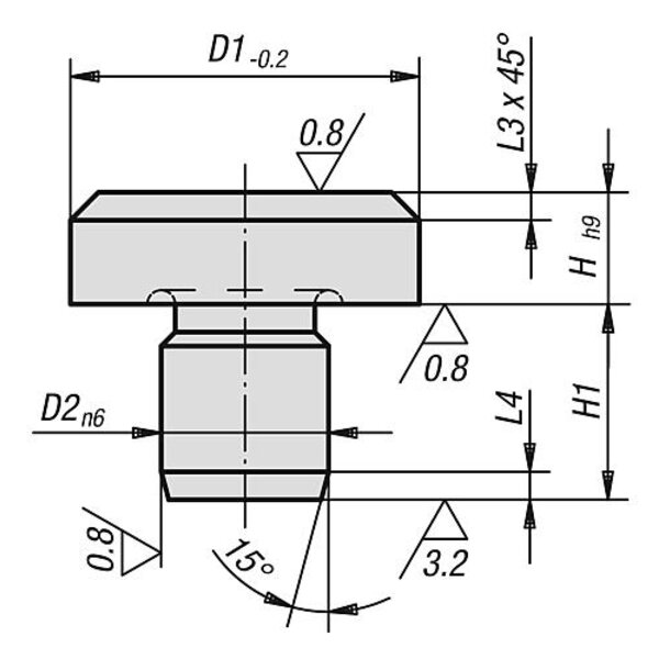 AUFLAGEBOLZEN D1=6, D2=4, H=5, WERKZEUGSTAHL GEHÄRTET UND GESCHLIFFEN