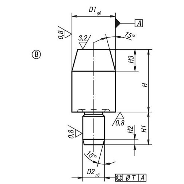 AUFNAHMEBOLZEN KURZE AUSFÜHRUNG DIN6321, FORM:B ZYLINDRISCH, D1=12, H=10, D2=...
