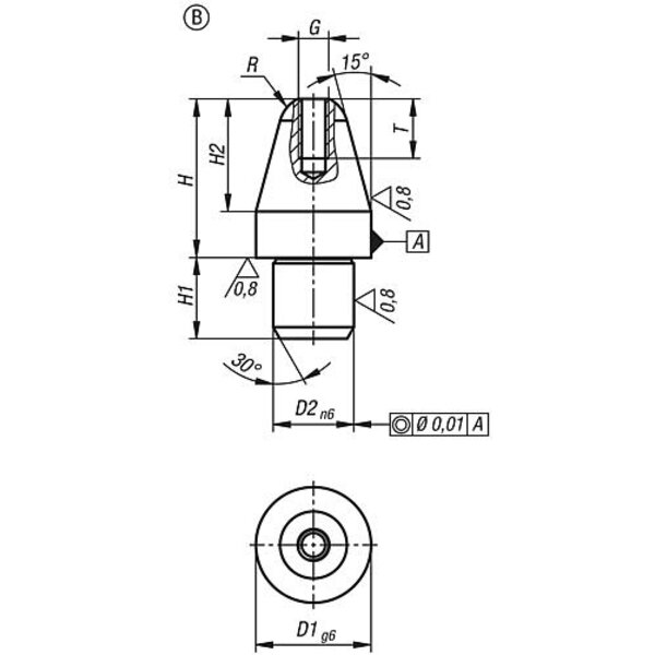 AUFNAHMEBOLZEN KURZE AUSFÜHRUNG, FORM:B, D1=5, D2=3, H=8, WERKZEUGSTAHL