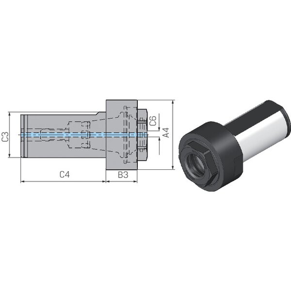 - [C6] Aufnahmegröße, werkstückseitig: ER-25QF