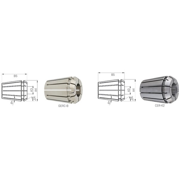 - Rundlauf-/Wiederholgenauigkeit 5 µm, außer bei GERC8-B 10 µm, CER K2 = 15/10 µm