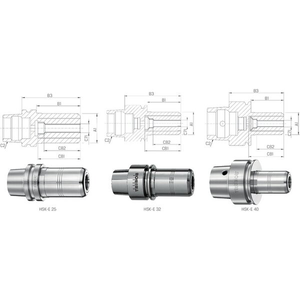 - HSK-E 32 / HSK-E 40 mit Gewinde für Kühlmittelrohranschluss