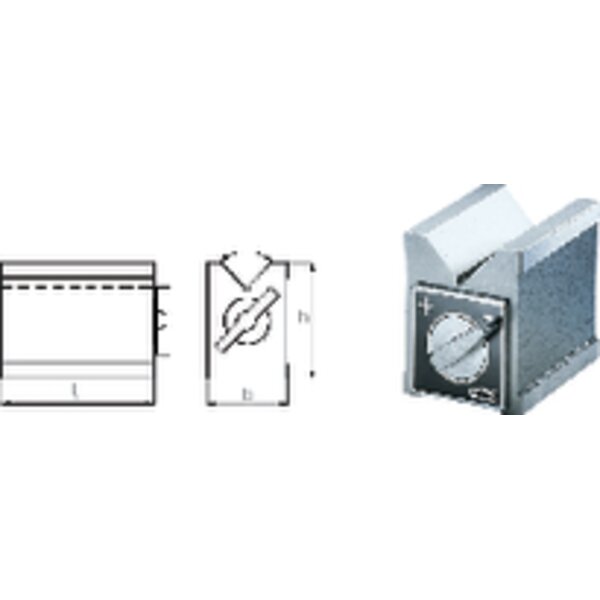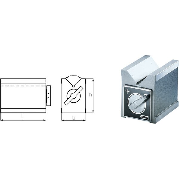 Vier magnetische Kontaktflächen (Ober- und Unterseite sowie zwei Stirnflächen). Beim Einschalten werden prismatische und gegenüberliegende Flächen magnetisiert. Die Magnet-Prismen sind vollkommen abgedichtet. Genauigkeit: Planparallelität unter 0,01 mm.