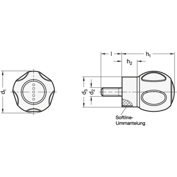 Das Design der Kugelgriffschrauben GN 675 ist auf die Produktfamilie Ergostyle® abgestimmt. Die Softline-Ummantelung macht die Kugelgriffschrauben besonders griffsympathisch und ergonomisch.