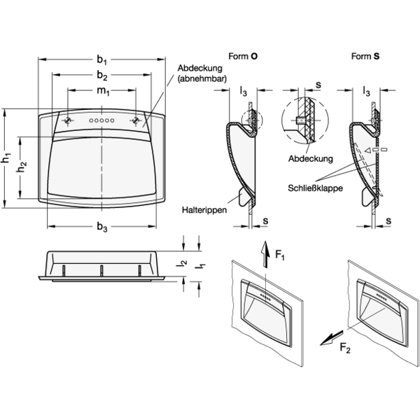 Die Angaben zur Belastbarkeit F1 und F2 wurden bei einer Wandstärke s = 1,5 mm ermittelt.