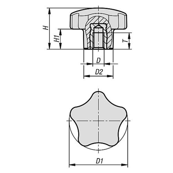 FÜNFSTERNGRIFF POLIERT D=M06, FORM:K DUROPLAST, SCHWARZ, KOMP:EDELSTAHL, BLANK, D1=32
