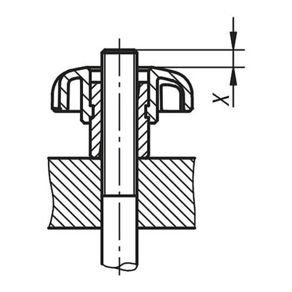 X: Der Gewindebolzen sollte einige mm länger sein als die Höhe "H"